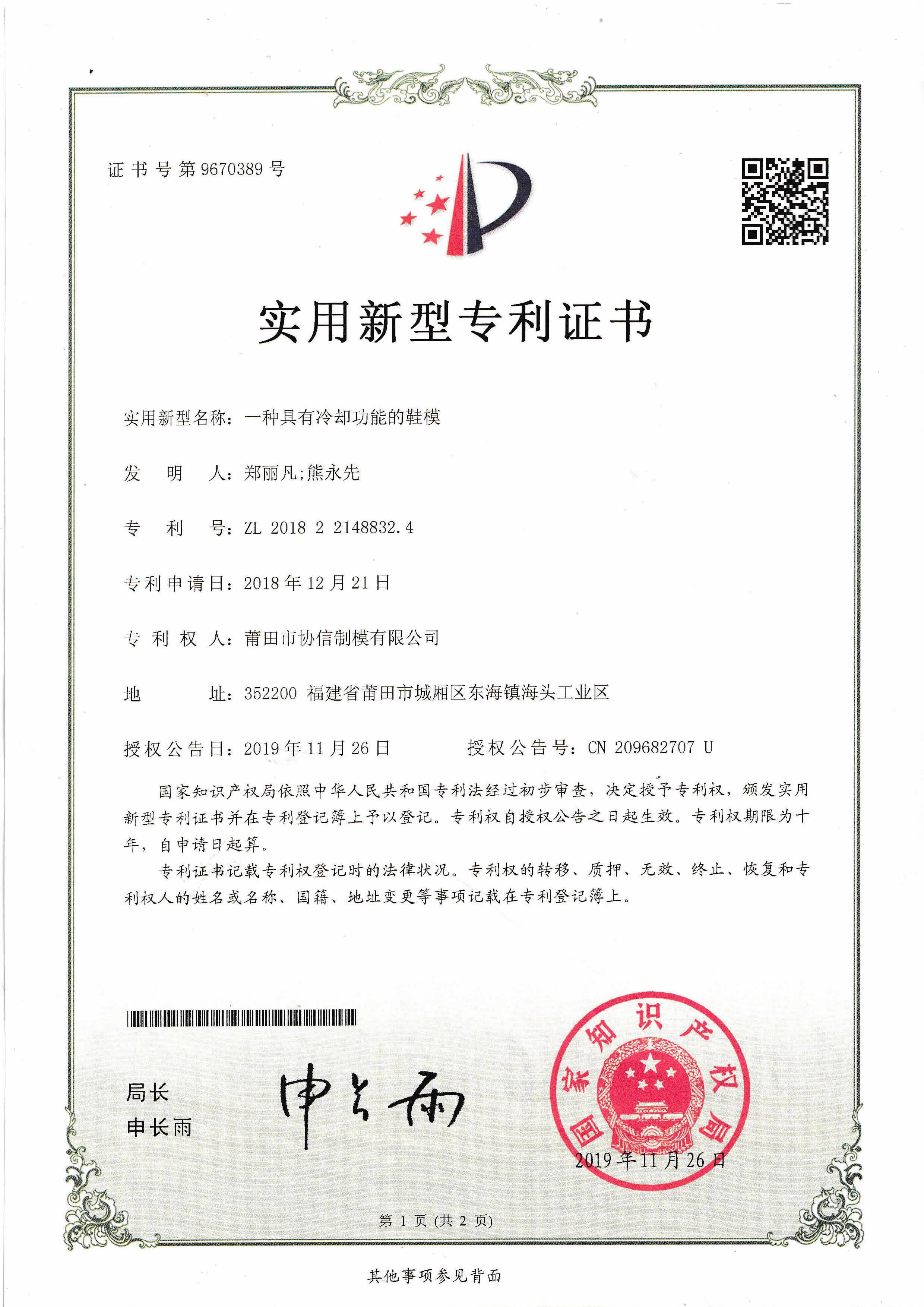 莆田市協(xié)信制模有限公司成立于2003年9月10日,由香港協(xié)信香港協(xié)信國際貿(mào)易有限公司投資組建,注冊(cè)資金120萬美元,是一家專業(yè)從事業(yè)鞋類模具設(shè)計(jì)、制造與銷售企業(yè),在行業(yè)內(nèi)享有盛譽(yù)。主要產(chǎn)品:RB、EVA、PVC、TPU、TR、TPR、ETPU、射出EVA等。公司月產(chǎn)能模具900多套,所有產(chǎn)品均采用國際質(zhì)量標(biāo)準(zhǔn),各個(gè)生產(chǎn)環(huán)節(jié)貫徹完善品質(zhì)檢查體系。
